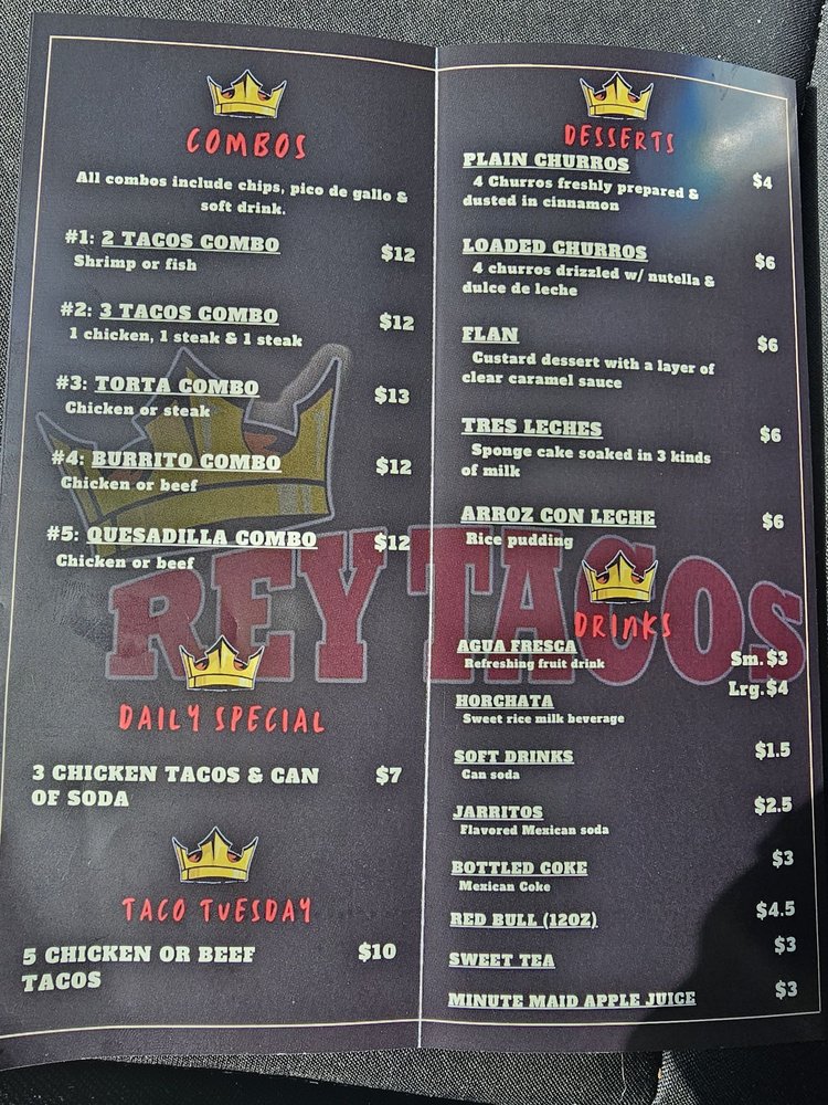 With ample outdoor seating and a drive-thru option, Rey Tacos is perfect for both quick meals and leisurely dining. The restaurant prides itself on fast service, with many dishes ready in just 15 minutes, always served piping hot. For those seeking flavor, variety, and affordability, Rey Tacos is a hidden gem that guarantees satisfaction. Whether you're dining in or opting for takeout, this charming spot is sure to become a go-to destination for taco lovers.